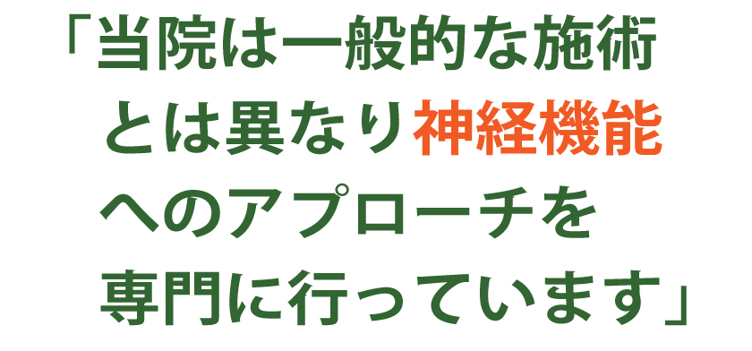 薬や機械に頼るのではなく、神経系が本来持っている働きを引き出し、身体の動きやバランスを整えていきます。