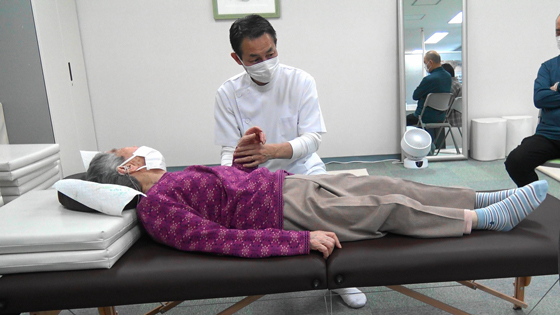 パーキンソン病が18年間続くと、筋固縮や姿勢の前傾が全身に定着しています。骨盤・背骨・重心の状態を確認し、どの神経の伝達が乱れているかを丁寧に把握します。長年かけて固まってしまった筋肉と神経の状態を、一つひとつ確認するところから始めます。