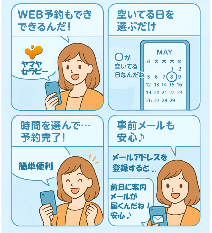 ご希望の時間が見つからない場合は、お電話でお気軽にご連絡ください。