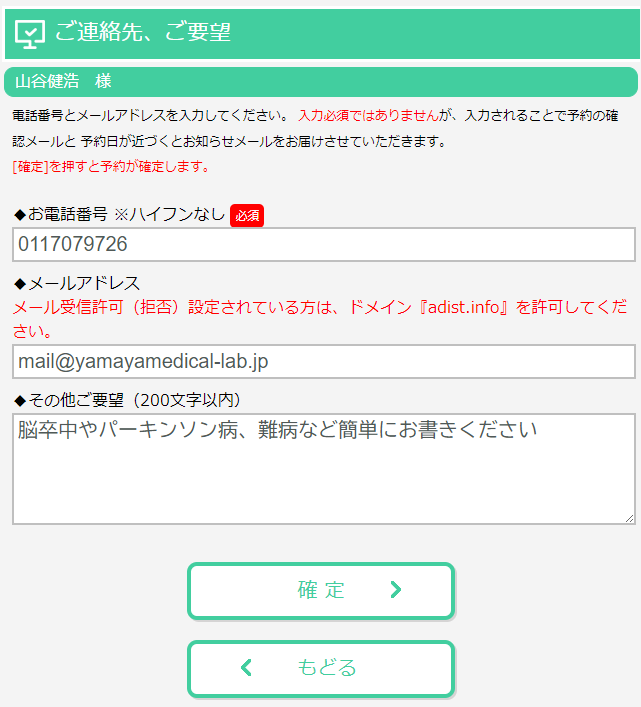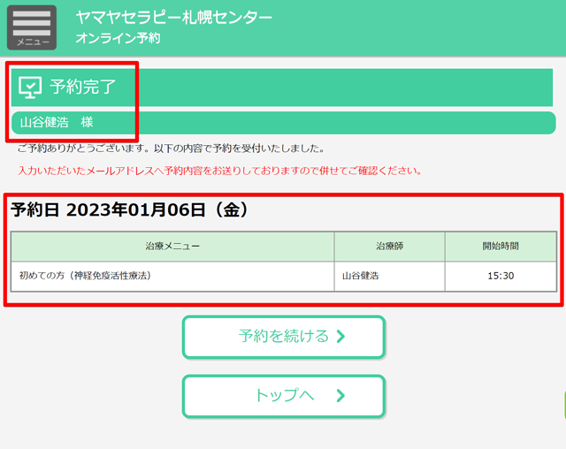 初めてWEB予約をご利用頂く方は、メールアドレスと電話番号の入力を必ずお願いいたします。