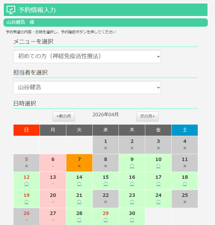 🔴 赤枠の時間帯はシステムの都合上、WEB予約ができません。